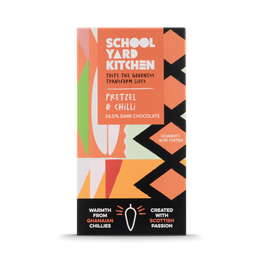 Blended with crunchy, salty and mouth-watering pretzel pieces, each bite delivers a satisfying crunch with a perfectly balanced kick from the sun-dried Ghanaian chillies.